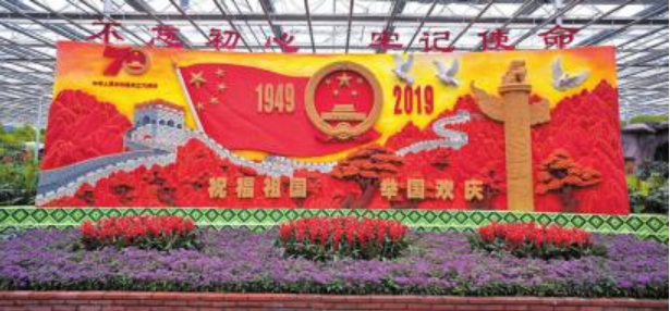 展厅运用创意农业的手法,以“新中国成立70周年”为主题,通过“不忘初心”“成就之路”“中国梦”“时光隧道”等板块展现党和国家70年来的发展和历史性成就。
