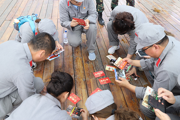 在车上,大家高声齐唱《没有共产党就没有新中国》,恢弘嘹亮的歌声,拉开了此次活动的序幕。在“三下江南战役纪念馆”,一件件珍贵文物、一张张历史资料照片、一幕幕珍贵影像,将“三下江南”战役的详细经过和抗日英雄罗明星的光荣事迹重新铺展在大家面前,配合讲解员的解说,真切地体验了革命先烈们在艰苦的战争环境下,克服重重困难,舍身忘我、浴血奋战,誓死保家卫国的英雄壮举。参观结束后,大家高举右拳,握拳宣誓,字字铿锵,宣誓仪式让大家的思想再次得到洗礼,入党时的初心再次得到升华。活动最后,通过“光辉历程”、“狭路相逢”等团队拓展活动,进一步增强了各成员单位间的向心力、凝聚力。